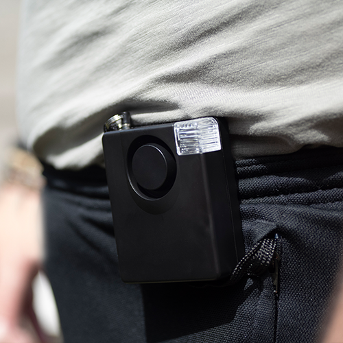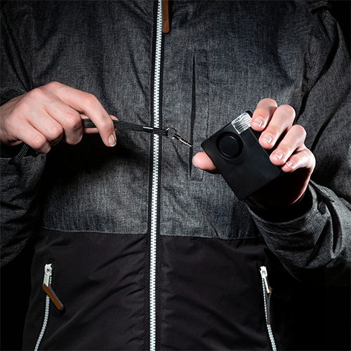 The personal alarm can also be connected to clothing using the removal bracket, for use when jogging or cycling.
